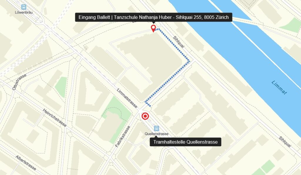 Verlassen Sie den Hauptbahnhof Zürich und gehen Sie zum Tramhaltestellenbereich Bahnhofquai oder Sihlquai/HB direkt beim Hauptbahnhof. Fahren Sie mit der Tramlinie Nr. 51 Richtung «Bahnhof Altstetten Nord» oder der Tramlinie Nr. 50 Richtung «Frankental» oder der Tramlinie 17 Richtung «Werdhölzli» bis zur Tramhaltestelle Quellenstrasse, steigen Sie dort aus und laufen Sie in Richtung des Passbüros.